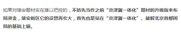 从这个角度看,第一波行情主力资金选择的核心要义第一位是本地股,雄安新区概念股大的范围是京津冀,主流是河北,细分到地市,同等情况下越靠近新区越好。