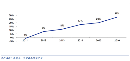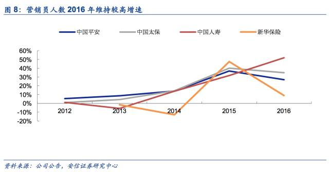 以往保险公司注重渠道。2016年四家上市险企的人力规模实现大幅增长,个险业务收入实现高速增长(平安YoY+24%/太保YoY+33%/国寿YoY+24%/新华YoY+20%),个险保费收入占比维持高位(平安YoY+88%/太保YoY+84%/国寿YoY+65%/新华YoY+65%),个险业务新业务价值率远高于其他业务,带动新业务价值提升。