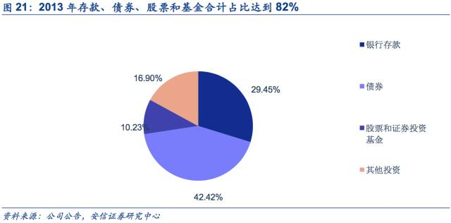 我们认为,2014年以前保险公司投资渠道有限,截至2013年末保险业银行存款、债券、股票和基金合计占比达到82%,投资收益率受股票市场、债券市场波动影响较大,上述观点在当时适用。