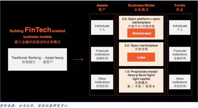 (2)金融科技创新带来业务流程颠覆性变化。前台方面,科技创新提高获客效率、提升营销成功率,如智能推荐引擎支持超过1000项的产品和服务;中台方面,科技创新使得产品定价更加精准,通过信用评估、风险定价、动态监控三大维度强化分控;后台方面,基于数据建模和可视化展现助力远程智能管理,实现云平台数据迁移金融系统上云,如车险业务,系统能够识别超过1000种主流车险,仅需0.15秒确认车型,外观件更换准确率达99%。