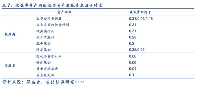 承保端方面,偿二代之下保障型产品资本占用较之高现价产品更低,因此产品结构将更加强调结构优化和质量提升,并更加重视资产负债久期匹配;投资端方面,由于权益类及基金投资的资本消耗提升,对固收类资产的最低资本系数要求低于权益类资产,险企投资资产配置结构将更加多元