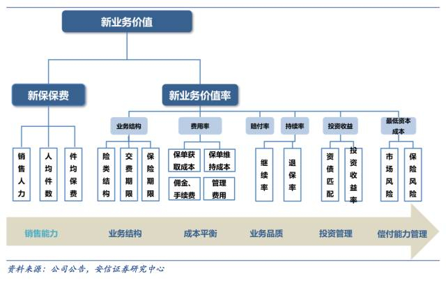 在以往粗犷的发展模式下,规模制胜,但如今保险公司注重质量取胜,如人均产能提升胜过营销员人数增长,管理与客户二次开发重要性日益提升,客户迁徙创造更多价值,管理较好的公司业绩增长会更加稳健,能够享有价值溢价。