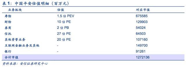 我们对中国平安采取分部估值法,并且考虑到集团客户迁徙成果显著,在市值加总时并不给予折价,各部分估值情况见下表,综合各部分业务的价值,我们给予中国平安目标市值12721亿元,每股目标价70元。
