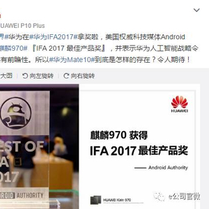 最新消息是,华为手机官方宣布,美国权威科技媒体Android Authority授予麒麟970“IFA 2017最佳产品奖”,并表示华为人工智能战略令人印象深刻且具有前瞻性。