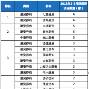 由于内地金融市场的监管和体制,2018年上半年中国内地企业赴港IPO掀起一股小热潮。日前,据香港联交所披露的信息,2018年1-5月份香港IPO新上市公司93家,共有51家券商参与了87家(不包括转主板的6家)新上市公司的保荐工作。根据券商所参与(包括联合保荐)保荐新上市公司的数量进行统计,得出券商保荐数见下图(按保荐数量排序),27家港资券商参与保荐了60家新上市公司,17家中资券商参与保荐了29家新上市公司,7家外资券商参与保荐了7家新上市公司。其中,耀盛资本以2家保荐项目数量的成绩与招银国际、中银国际、建银国际等券商并列第四。