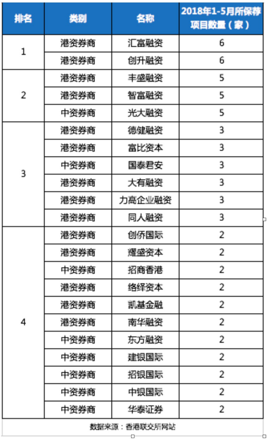香港联交所披露1-5月IPO数据 耀盛资本“C”位出道
