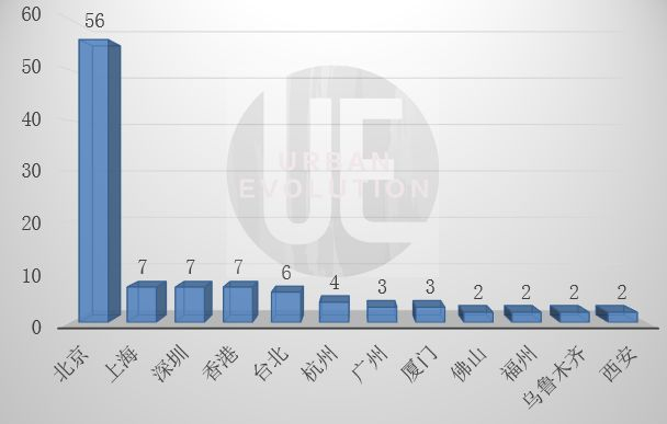 除上述4座城市外,台北、杭州、广州、厦门、佛山、福州、乌鲁木齐和西安8座城市也分别聚集着不止一家世界500强。剩余28座城市,则各拥有一家世界500强。