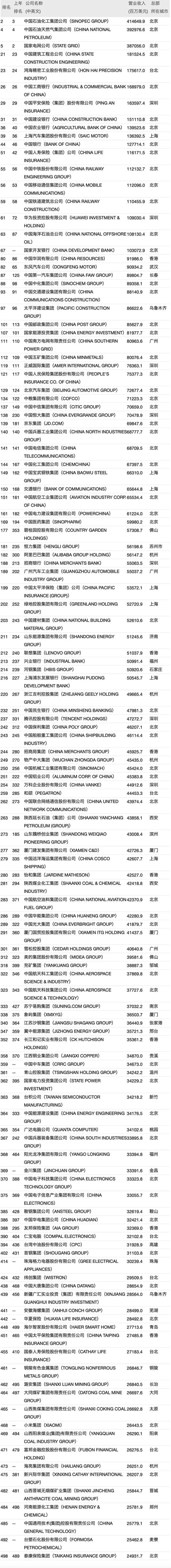 据了解,《财富》杂志公布的世界500强榜单,主要依照每家公司公开的过去一年主营业务收入进行排名。