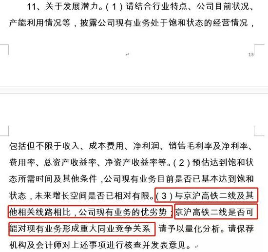 京沪高铁被问询:与京沪二线竞争关系如何?
