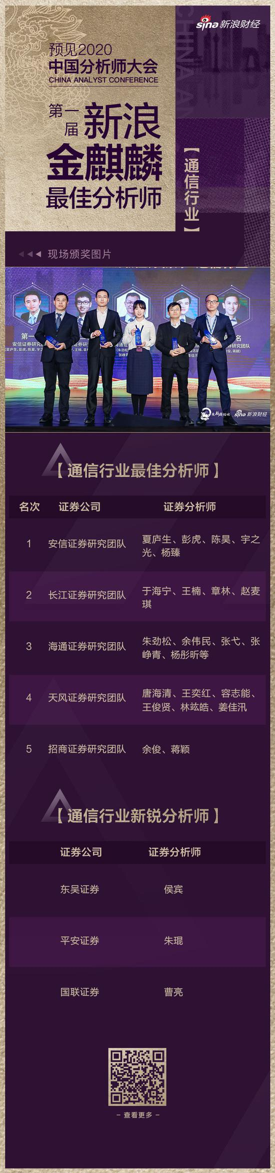 新浪金麒麟分析师通信业:安信夏庐生第一 长江于海宁
