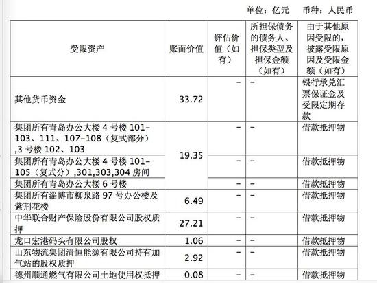 然而,应急方案也显得苍白无力。中融新大现金流已经为负,截至上半年,其货币资金仅为36亿元,比上年末余额下降四成,也是经营过程中现金支付及票据到期兑付所致。更糟糕的是,集团各类资产当前都处于抵押状态,在青岛的多个办公大楼都处于“借款抵押物”受限状态。