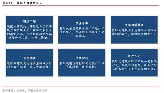 政策支持下,装配式建筑未来发展前景可期。装配式建筑将部分或所有构件在工厂预制完成,然后运到施工现场进行组装,预制构件运到施工现场后,会进行钢筋混凝土的搭接和浇筑,所以拼装房较为安全。所以,这种“产业化”、“工业化”的建筑在欧美及日本已经广泛采用。从国内来看,从中央到地方,政府主管部门都在加快推进装配式建筑的步伐。为大力发展绿色建材,推动建筑工业化,加大政策激励,2013年国务院签发了《绿色建筑行动方案》。同年,为推广钢结构在建设领域的应用,提高公共建筑和政府投资建设领域钢结构使用比例,国务院又签发了《关于化解产能严重过剩矛盾的指导意见》。2016年,国务院发布了《关于进一步加强城市规划建设管理工作的若干意见》,为大力推广装配式建筑,减少建筑垃圾和扬尘污染,缩短建造工期,提升工程质量给予强力的政策支撑。该《意见》指出,力争用10年左右时间,使装配式建筑占新建建筑的比例达到30%。2017年12月,在住房城乡建设部举行“推进装配式建筑平稳健康发展”的新闻发布会上,住建部提出:到2020年和2025年,装配式建筑占比要达到15%、30%,我们认为未来市场增量可期。