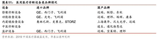 目前进口品牌仍占据较大市场份额。虽然我国国产医疗设备发展飞速,但目前而言,无论是全球还是中国市场,大型高端市场依然还是国外大品牌的天下,其中GE、西门子、飞利浦占据绝大多数的市场份额。
