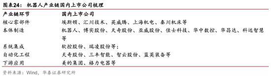 国产企业在工业机器人的布局方面,我们通过对机器人产业链的国内上市公司梳理,如下表所示,相对来看核心零部件技术壁垒较高,尤其在高端的零部件环节短期国产化替代的难度较高,需要密切关注技术研发的推进;在本体制造以及系统集成方面,我国已经具备一定的产业规模优势,关注已经初步形成规模的龙头企业;在自主化工程方面,未来有赖于云和AI技术的突破;在下游应用方面,则主要看点在于一些龙头制造公司通过并购或研发而开展的智能化转型,短期或提升估值。因此,综合来看,建议关注汇川技术、埃斯顿、巨星科技、美的集团、机器人等。除此之外,在整个工业互联网产业链中,建议关注标的浪潮信息(服务器)、能科股份(边缘计算)。