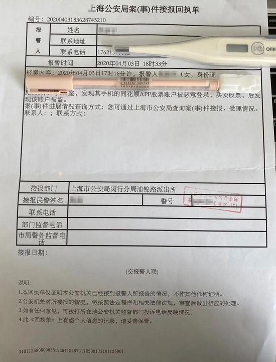 投资者向警方报案的回执单
