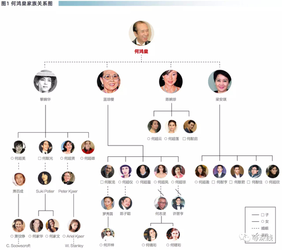 (九)“强强结合”的联姻关系在子女一代备受考验。何鸿燊自己与元配的结合就是“强强结合”的例子,他的父母叔嫂,乃至于他的祖辈,均有不少这样的婚姻联盟 (Hall, 1992; 郑宏泰、黄绍伦,2004),这也为何鸿燊及其家族带来了极为紧密的社会关系。何鸿燊明显看到这种关系的重要性,于是安排女儿们嫁到不同大家族,例如何超英与萧百成结合、何超琼与许晋亨结合、何超凤与何志坚结合,但三段“强强结合”的联姻均离婚收场,令人叹息。当然,儿子何猷龙与罗秀茵的“强强结合”甚为恩爱,算是扭转局面。至于何鸿燊子女们婚姻路上未能如意的问题,同样值得日后再作探讨。