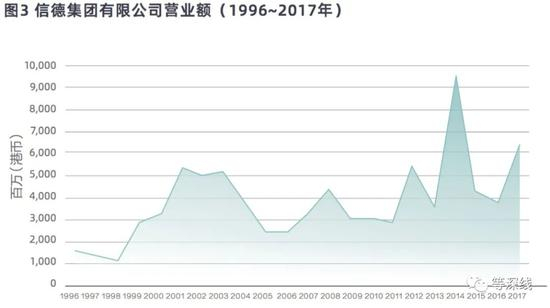 当然,若细看信德企业的营业额,则不难看出1996到2017年20年间的起落波动(图3),这也反映了这个时期香港经济和社会的风高浪急。
