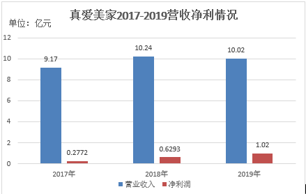 招股书显示,真爱美家在报告期内盈利保持了上升的态势,2017年-2019年,公司的实现营业收入分别为9.17亿元、10.24亿元、10.02亿元,净利润分别为2772.08万元、6292.73万元、1.02亿元。