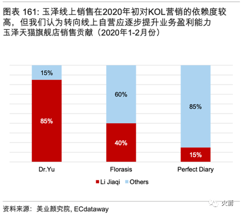 图20:上海家化线上销售对单一KOL渠道的依赖度较高