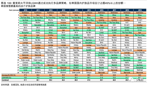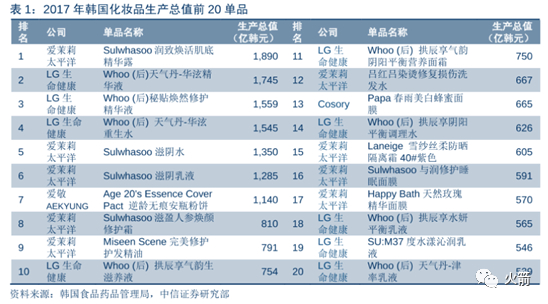 韩国化妆品生产总值最高的Top20单品中,爱茉莉太平洋(090430.KS)和LG生命健康(051900.KS)两大巨头占据了主导,而且很多单品都属于同一品牌的同一系列,比如Whoo(后)天气丹系列(图36)。
