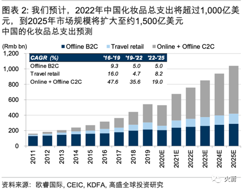 图28:高盛预计未来5年中国化妆品支出将持续增长