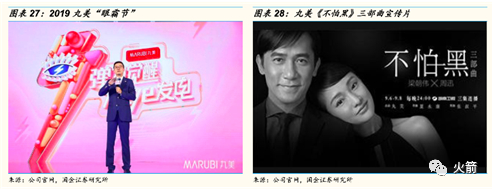 相比于珀莱雅和上海家化,丸美的营销策略较为传统。丸美更依赖明星广告代言(图22),主要通过宣传片、线下活动等方式触达用户(图23),对年轻消费者的吸引力和触达力不足。