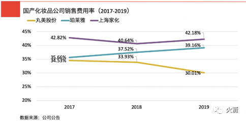 由于国产品牌仍在提升品牌知名度阶段,销售费用率要略高于海外大牌,在30%-45%左右。三家国产化妆品公司的销售费用率差异较为明显(图13),体现了不同的盈利能力和经营策略。