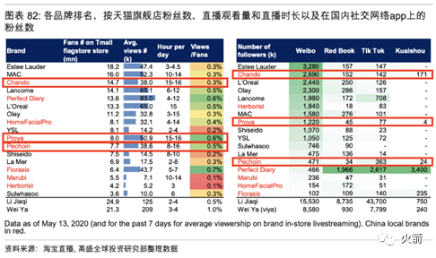 图45:各化妆品品牌在淘宝直播、社交网络app上的营销表现