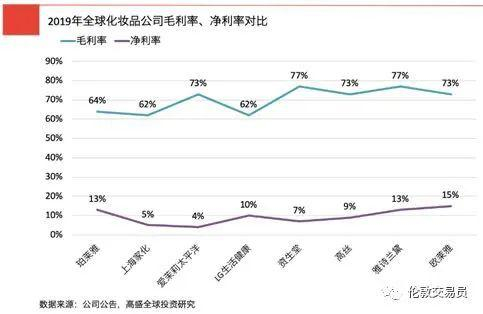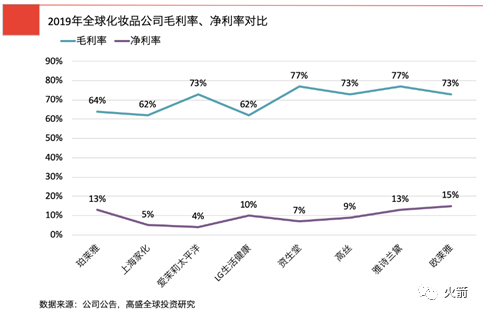 图11:2019年全球化妆品公司毛利率、净利率对比