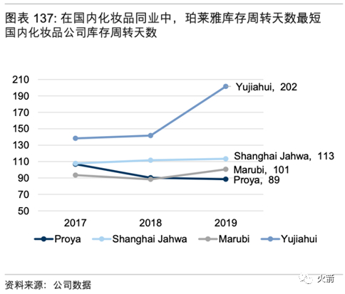 如果品牌商投入的销售费用充足、营销效果好,那么出货速度提升就成为了必然结果。对于中低端化妆品公司来说,存货周转率是反映出货速度的最佳财务指标,也是营收增速的先行指标。