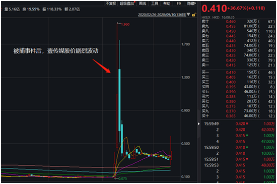 其中,安里证券在被捕事件前并无持仓,但在被捕当日即大幅加仓,而在被捕事件后一天净持仓大减0.34%。如果以沽出日高位价格1.96元计算,将较前一日收盘价大赚1534.5万元。