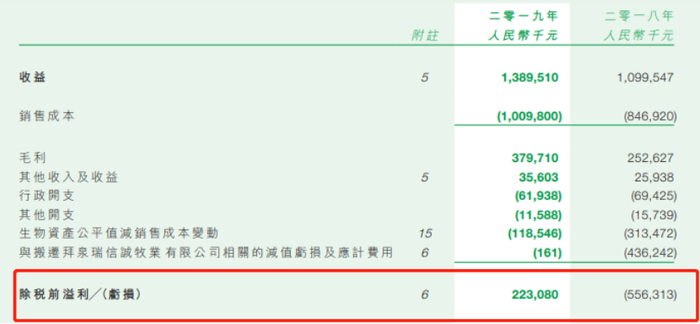 不过,值得注意的是,原生态牧业曾在2018年录得5.56亿元的经营亏损后,2019年便迅速扭亏,实现经营利润2.23亿元。