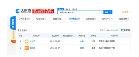 天眼查APP显示:除了金大师以外,路千科技旗下还有一个名为“金生宝”的产品。
