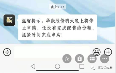 课程结束后,美林证券的客服立即发来提醒,“华康股份明晚将停止申购,还没有完成配售的份额,抓紧时间完成申购!”。