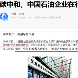 同时,中国石油报题为《碳中和,中国石油企业在行动!》的报道中还专门提到,目前中国石油集团所持有的天津排放权交易所股份,已经交由中油资本(000617)的全资子公司中油资产管理有限公司托管。