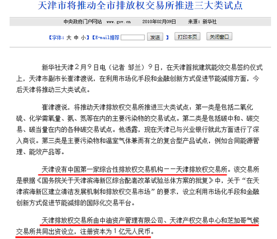 显然,有不少资料可以进一步验证中油资产管理有限公司是天津排放权交易所的创始股东。