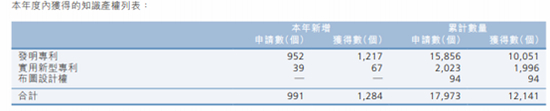 发明专利方面,我国专利类型包括发明专利、实用新型专利、外观专利。其中发明专利从申请到授权需要的时间最长,因此含金量最高。中芯国际2020年内新增申请发明专利、实用新型专利、布图设计权总计991个,新增获得数1284个;历史累计申请数17973个,获得数12141个。