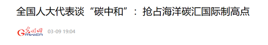 碳汇概念成为本轮碳中和概念板块炒作的主线:海洋碳汇将接力林业碳汇成为碳中和概念行情炒作的下一个热点风口——作为海洋生物“蓝色碳汇”重要组成部分的“海洋碳汇渔业”最具代表性