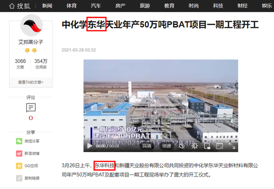 今年3月26日上午,东华科技(002140)和新疆天业股份有限公司共同投资的中化学东华天业新材料有限公司年产50万吨PBAT及配套项目一期工程现场举办了盛大的开工仪式。