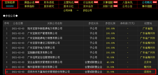 公开资料显示,宝新能源(000690)作为大股东之一,持有深圳市东方富海投资管理股份有限公司30%股权。