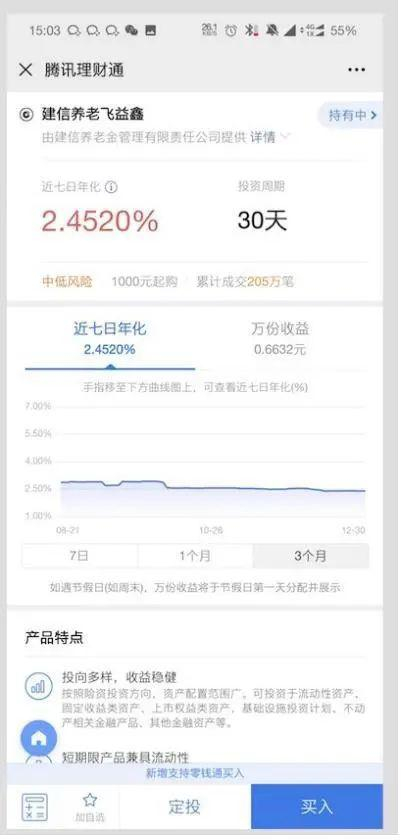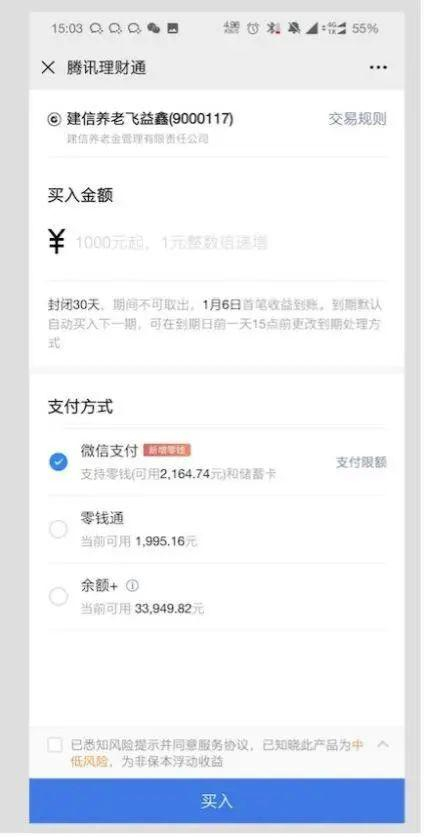 据介绍,目前,该功能支持零钱申购理财通平台的绝大部分产品,包括余额+、个养保险、基金等。用户只需打开【微信】-【我】-【支付】-【理财通】前往产品买入页,即可使用零钱购买相关理财产品。另外,针对非净值型产品,经零钱转入的资金,其理财收益部分将留在理财通账户,并可以享受免费提现服务。