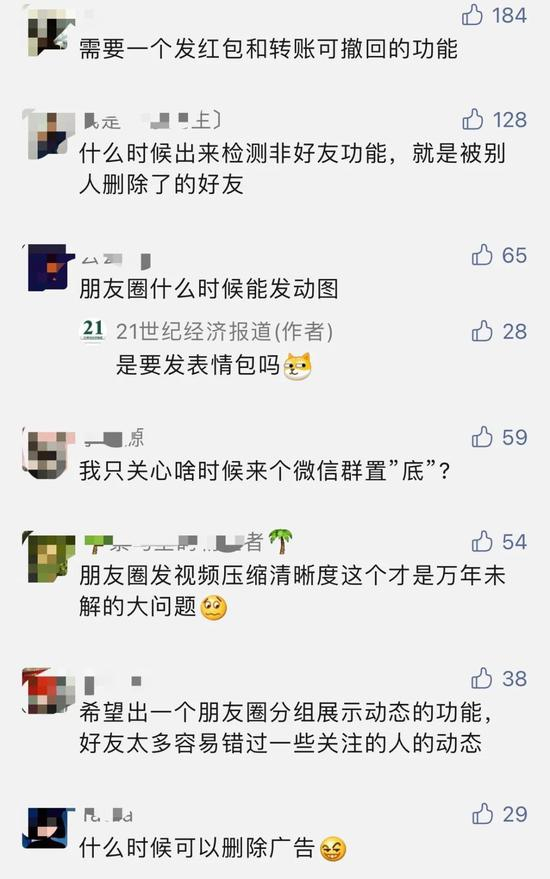 此前微信的IOS版本恢复了“语音通话用系统电话接听”功能,网友当时在21君的微信下纷纷留言了想要的功能(消失3年,微信重磅功能回归!转账、发红包也有更新……),获点在最多的是红包转账的可撤回功能以及检测非好友功能了。