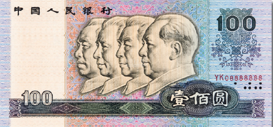 直到第四套人民币1980年版的“百元大钞”中,正面主景使用毛泽东、周恩来、刘少奇、朱德四大领袖浮雕像,国家领导人头像才首次被印上人民币。