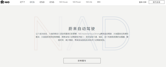 在蔚来的官方网站上,在介绍NAD驾驶系统时,同样用大字写着“蔚来自动驾驶”。需要一直将页面拖至末尾,才有一行浅色的小字写着“蔚来自动驾驶系统仅为辅助驾驶之目的,不能完全替代驾驶员的操控”。