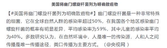 根据世界胃肠组织(WGO)保守估计,全球至少有一半人口感染幽门螺杆菌。
