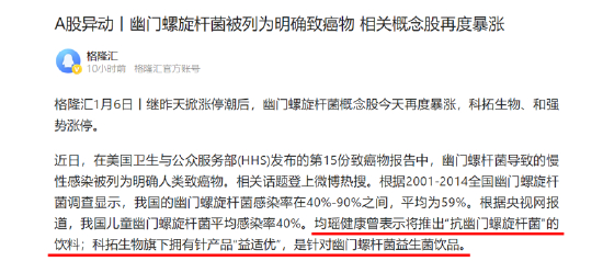 幽门螺杆菌概念上演涨停潮 掘金相关概念股