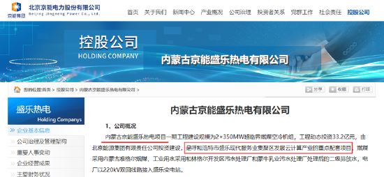 天眼查数据显示,内蒙古京能盛乐热电有限公司是京能电力(600578)的全资子公司。内蒙古京能盛乐热电项目一期工程建设规模为2×350MW超临界燃煤空冷机组,工程动态投资33.2亿元,是呼和浩特市盛乐现代服务业集聚区发展云计算产业的重点配套项目。