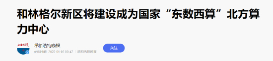 “东数西算”工程正式全面启动:内蒙古和林格尔新区已经官方宣布将打造成为国家“东数西算”北方算力中心