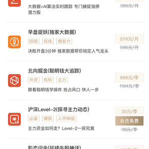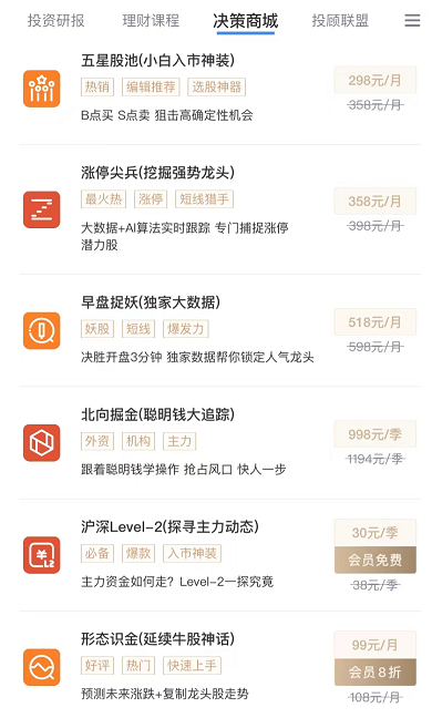 新浪财经VIP-决策商城荟聚股民必备的操盘金股||五星股池||早盘捉妖||涨停尖兵||尾盘掘金||北向掘金||形态识金||Level2等选股工具。
