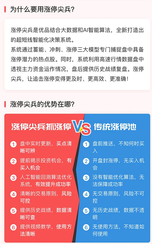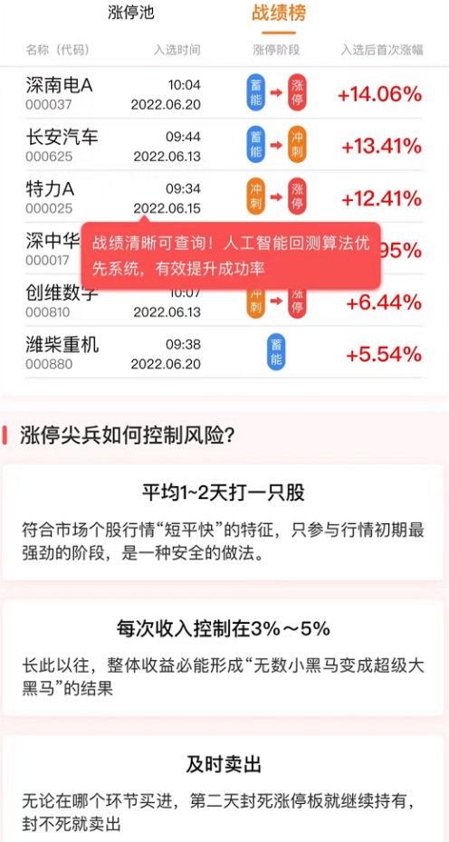 如何更早抓到涨停股?盘面信号如何把握?涨停尖兵筛选符合“短平快”的特征的个股,只参与行情初期最强劲的阶段,及时、准确、高效、科学抓涨停,通过蓄能、冲刺、涨停三大模型,专门捕捉盘中具备涨停潜力的热点股票。